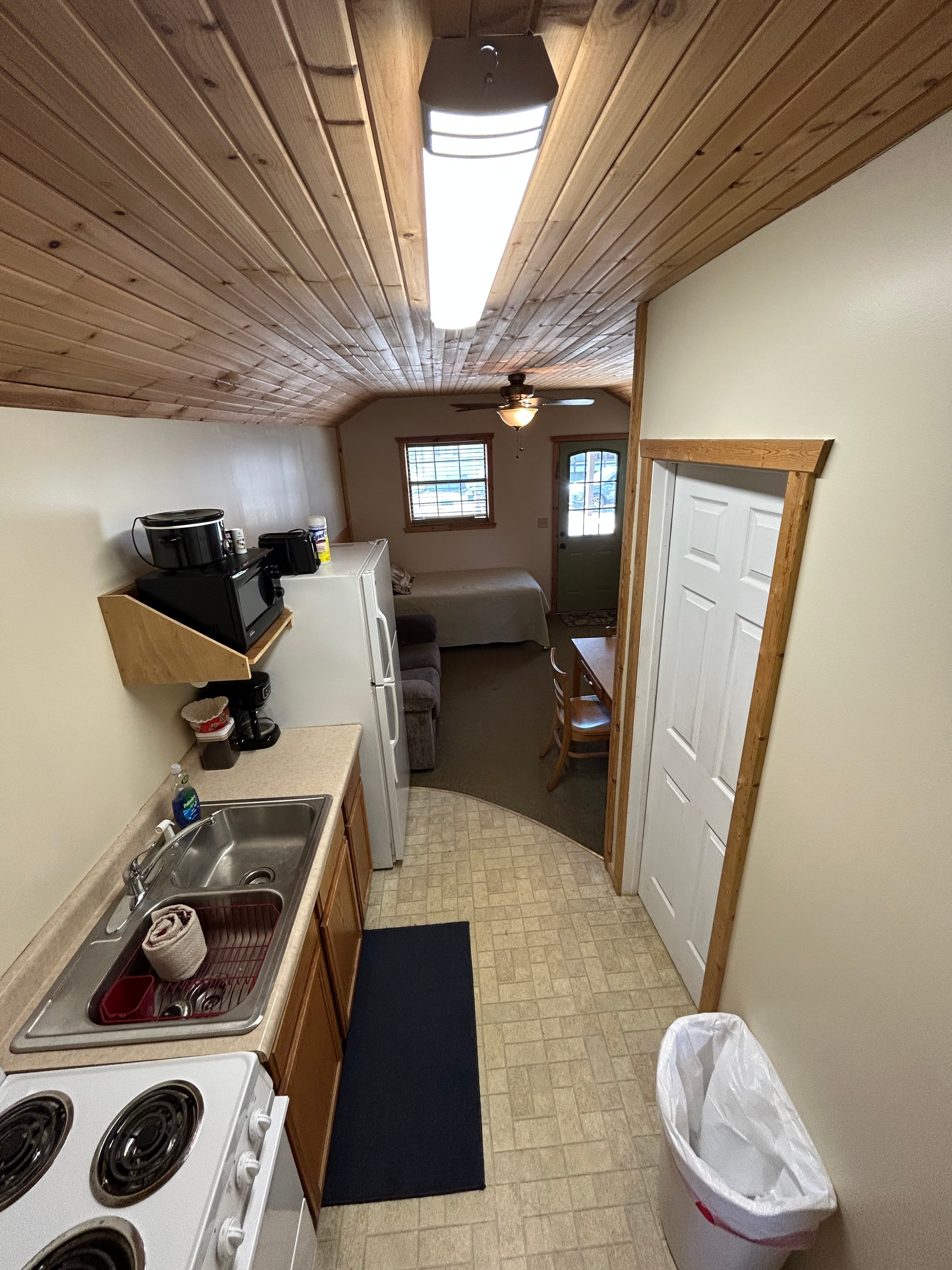 Living Area w/ couch & Twin XL , Complete Kitchen w/Dining Table